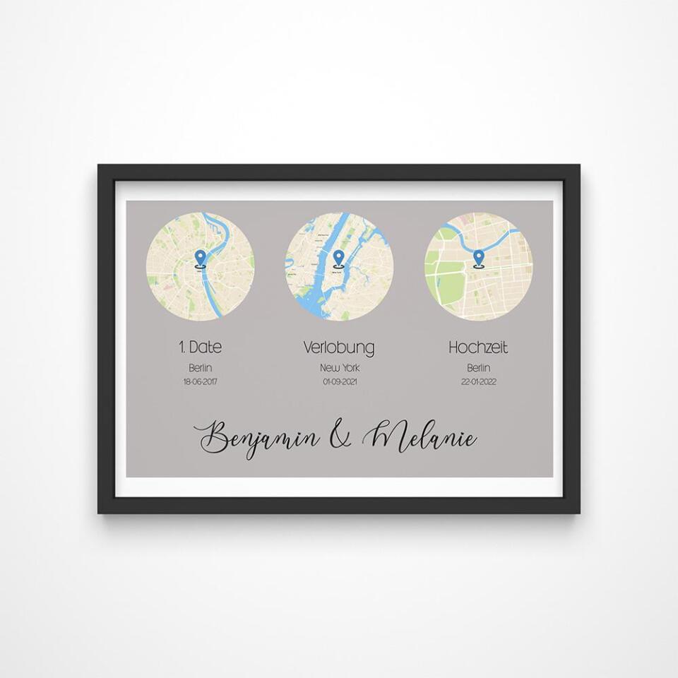 personalisiertes Karten Poster mit Herz - zwei Orte