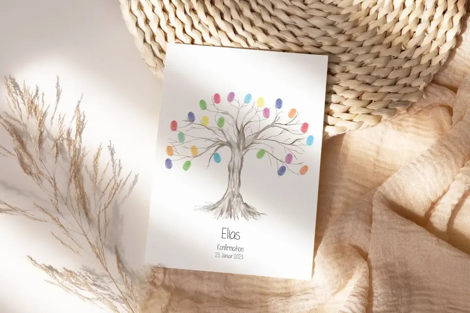 Entdecke einzigartiges Fingerabdruck Gästebuch für Taufe, Konfirmation, Kommunion oder Geburtstag! Dieses einmalige Geschenk ist ein wundervolles Andenken und wird jeden besonderen Anlass unvergesslich machen. Jeder Gast kann seinen Fingerabdruck hinterlassen um den Tag unvergesslich zu machen.