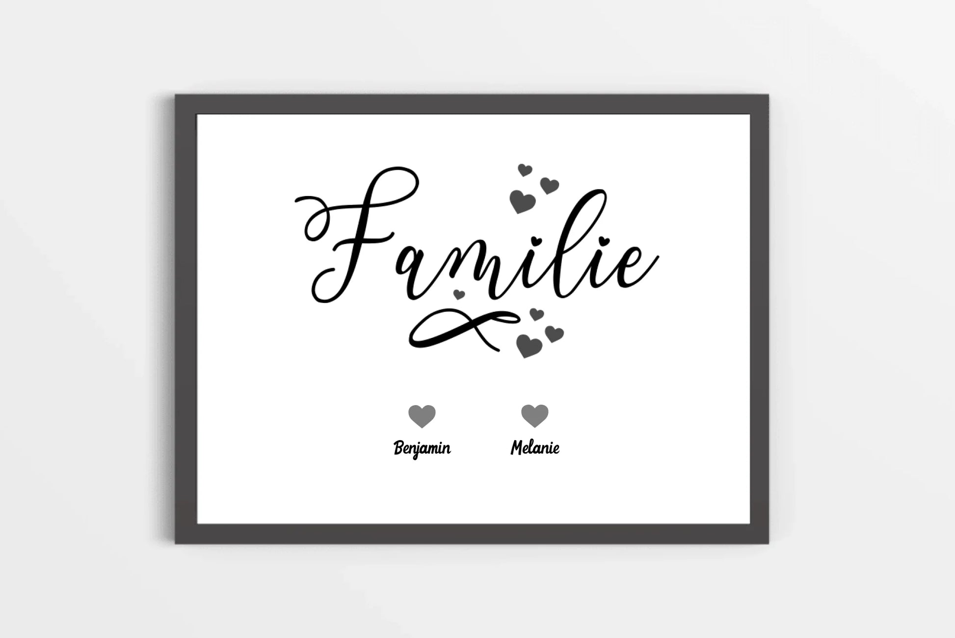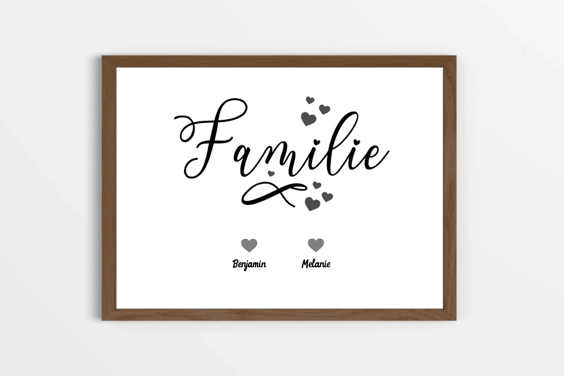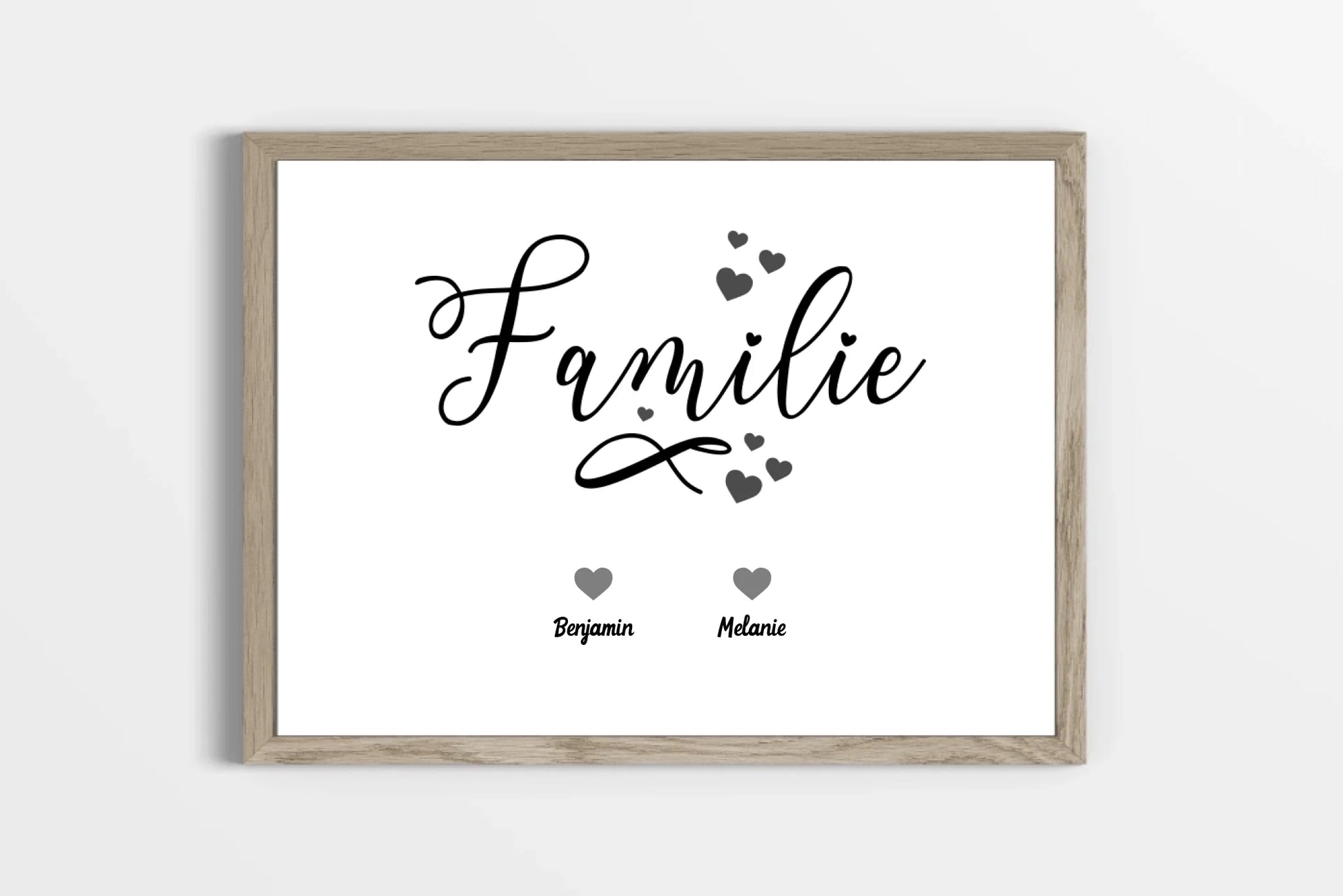Familienbild personalisiert mit Namen und Herz - Bis zu 6 Personen & Haustiere