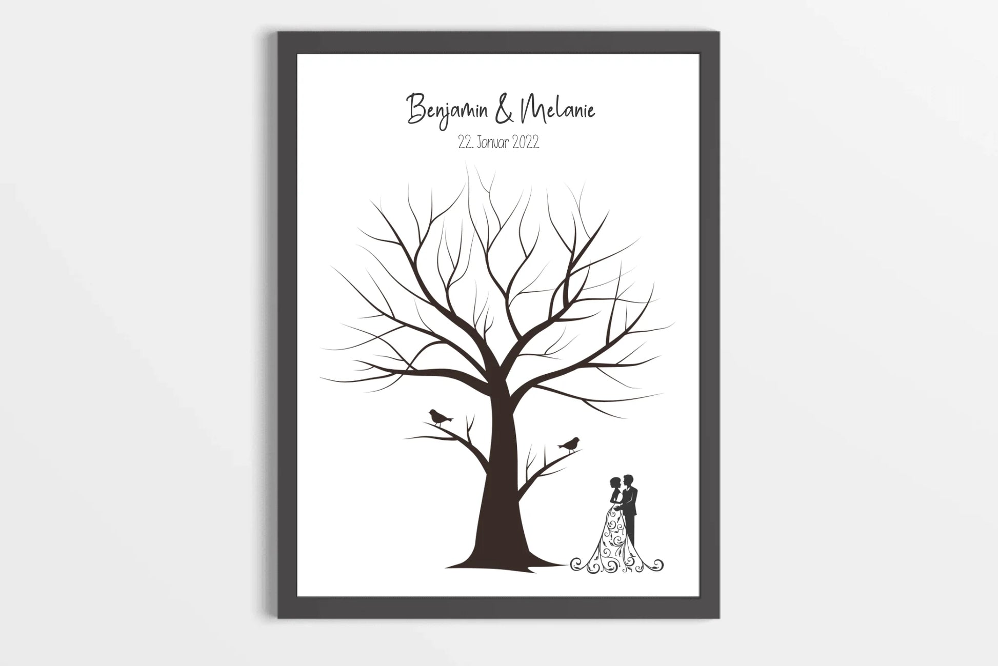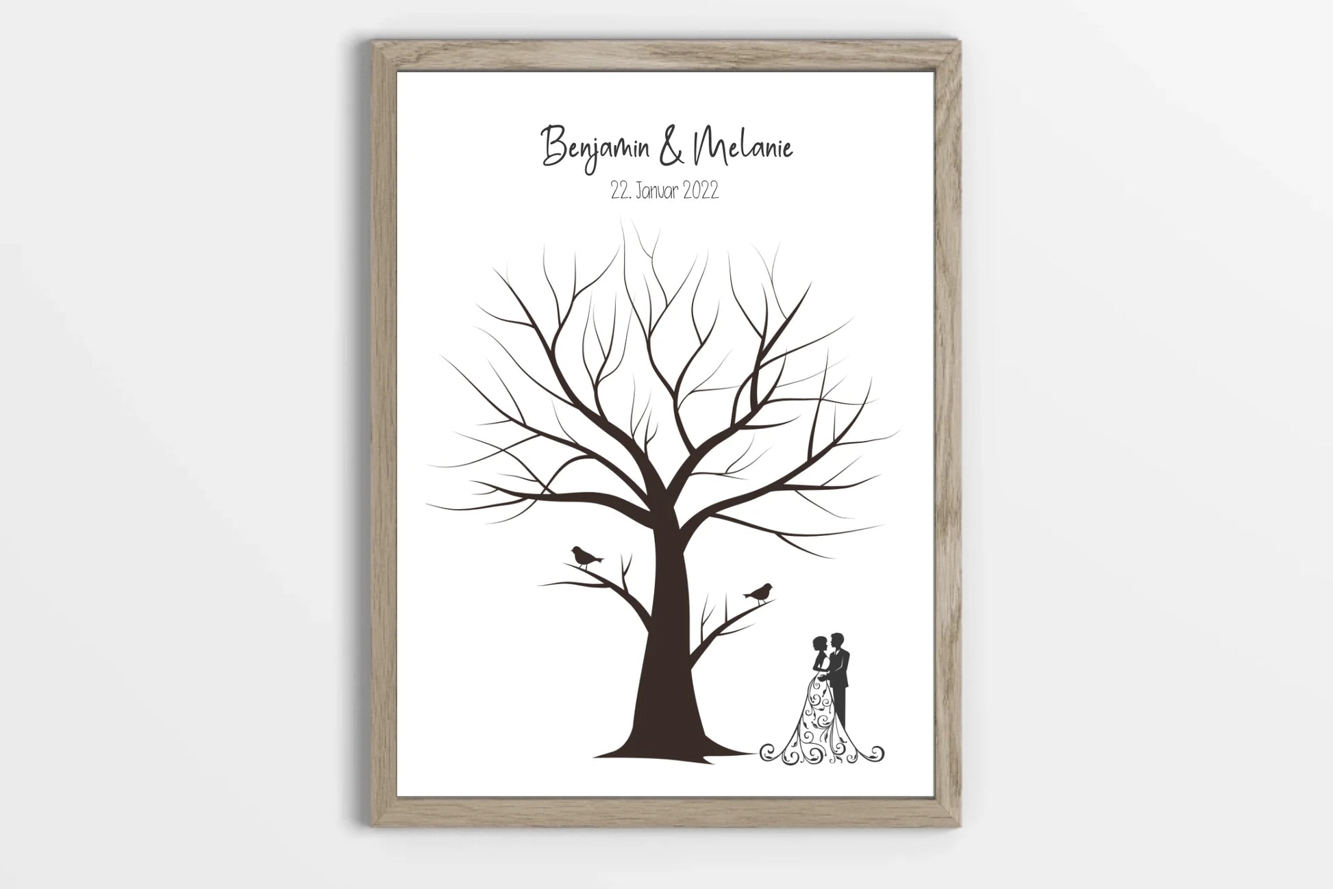 Fingerabdruck Baum Hochzeit • Personalisiertes Gästebuch Poster mit Vögeln, Namen & Datum • Erinnerung an euren besonderen Tag