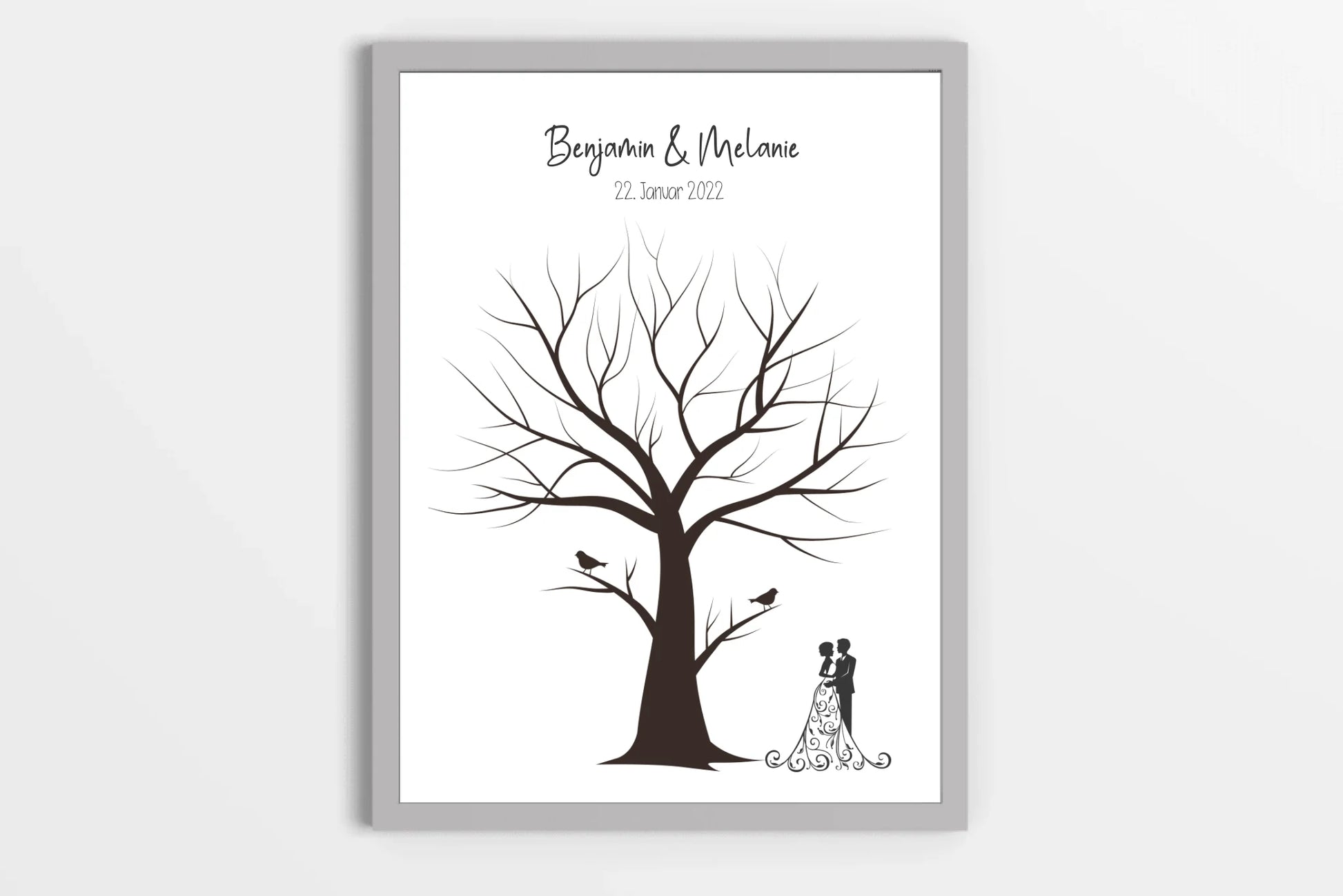 Eure Gäste verewigen sich mit ihren Fingerabdrücken als Blätter auf dem Baum und schaffen so ein einzigartiges Kunstwerk, das euch an euren großen Tag erinnert.