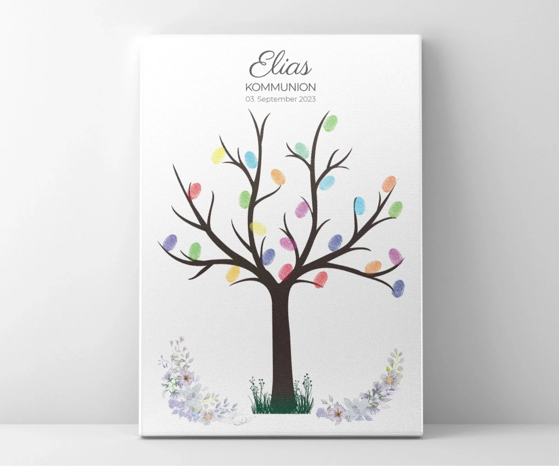 Dieses personalisierte Fingerabdruck Gästebuch ist das perfekte Highlight für besondere Feste wie Kommunion, Konfirmation oder Taufe. Die Gäste hinterlassen ihre Fingerabdrücke als bunte Blätter und schaffen so ein liebevolles Erinnerungsbild, das auch Jahre später noch große Bedeutung hat.