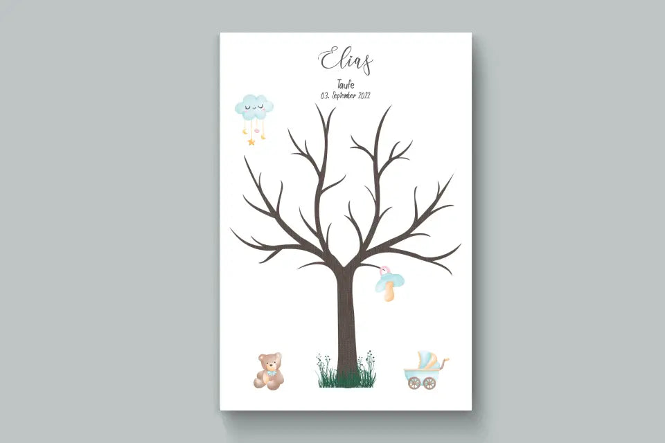 Fingerabdruck Gästebuch Baum für Taufe - Junge und Mädchen