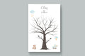Fingerabdruck Gästebuch Baum mit Vögel für Taufe - Junge und Mädchen