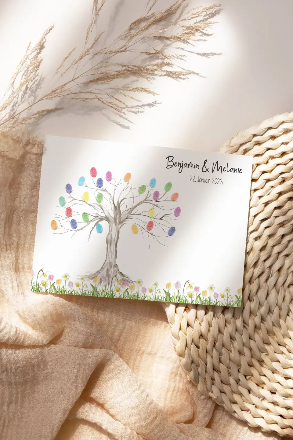 Fingerabdruck Gästebuch Baum mit Blumen für Hochzeit