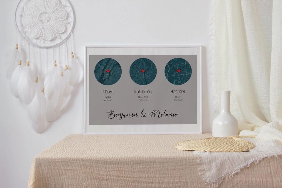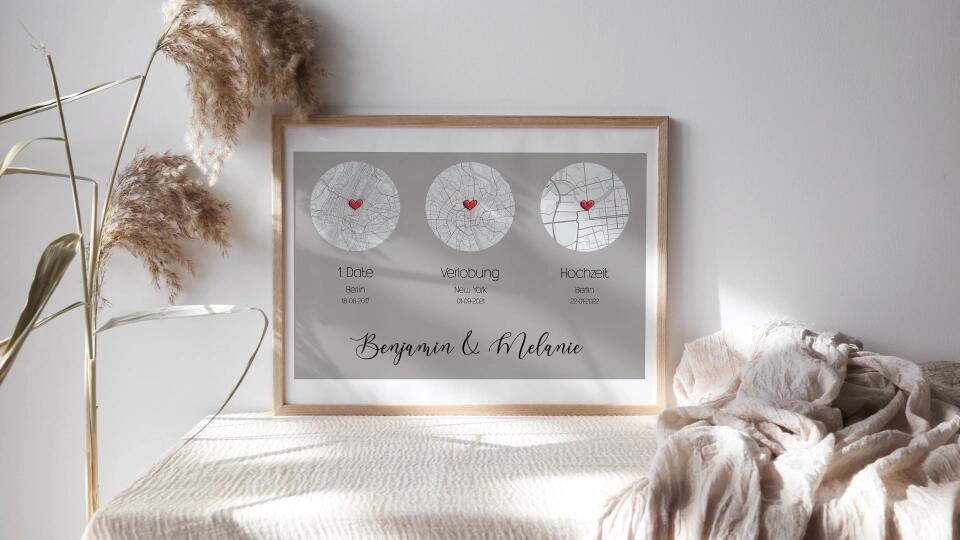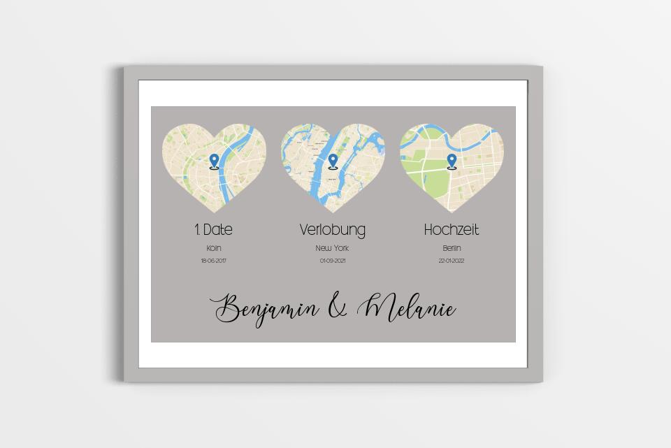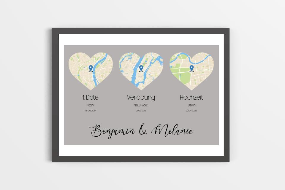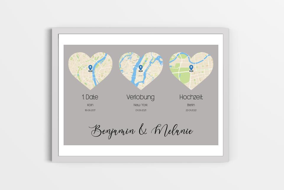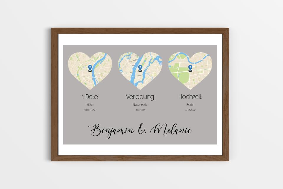 Das personalisierte Karten-Poster mit Herz ist ein einzigartiges Geschenk für besondere Anlässe wie Hochzeiten, Jahrestage oder den Valentinstag.