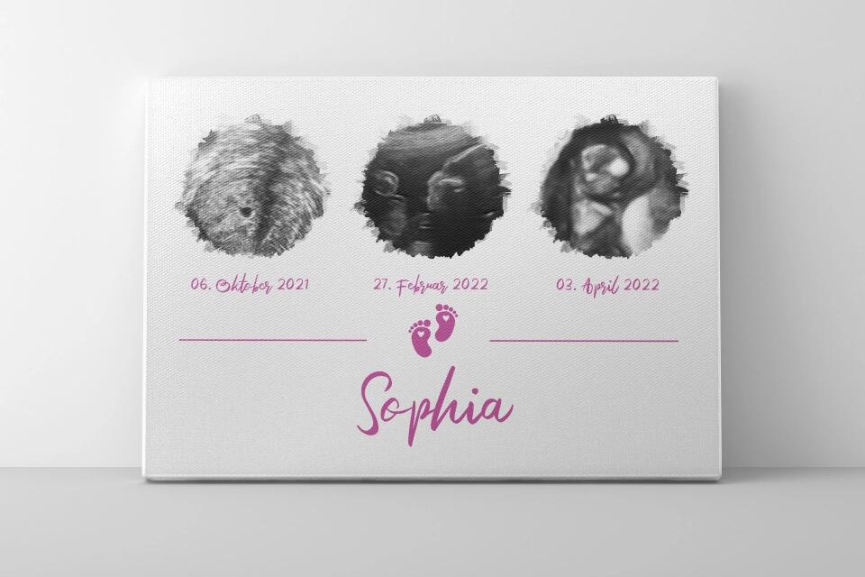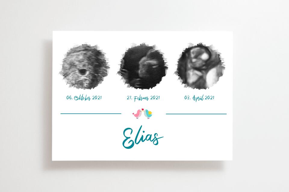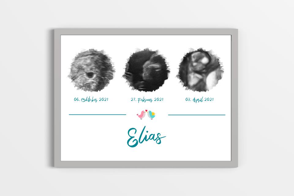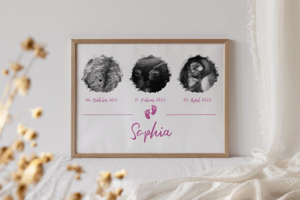 Ultraschallbild personalisiert dreifach für Junge oder Mädchen